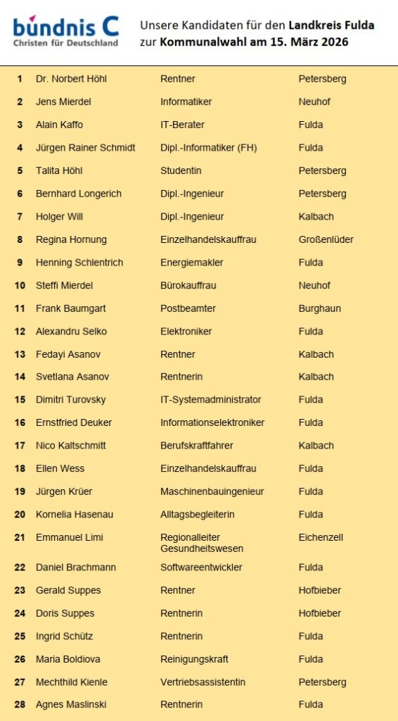 Unsere Kandidaten für die Stadtverordnetenversammlung Fulda